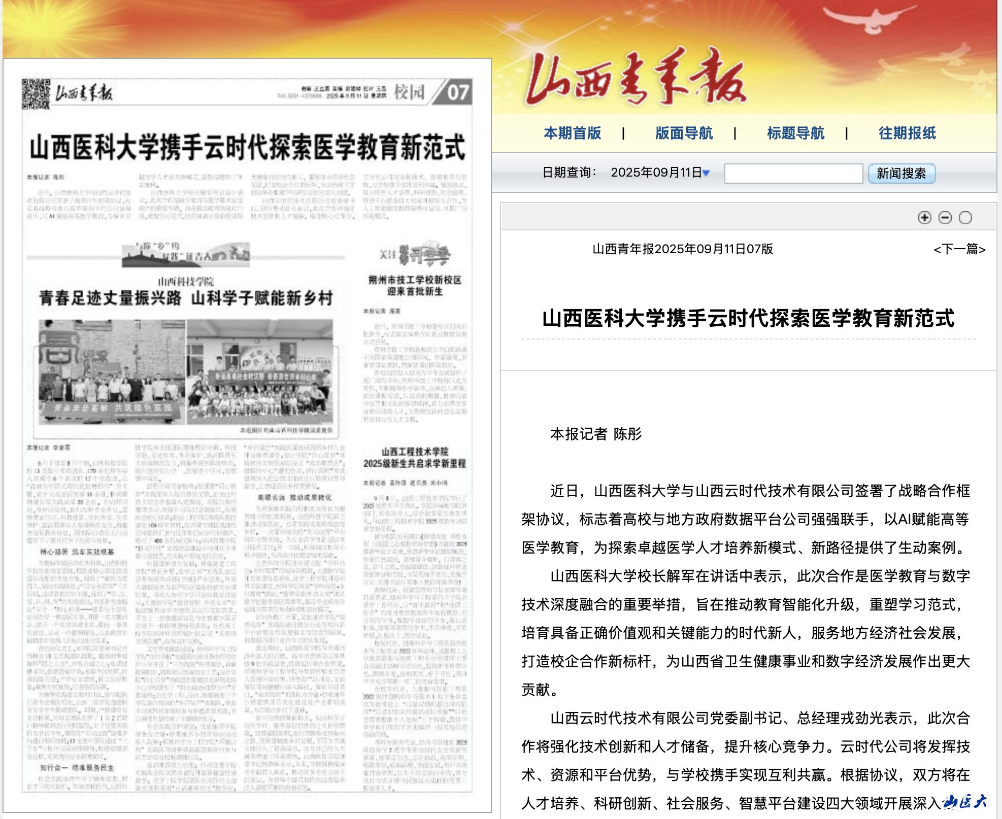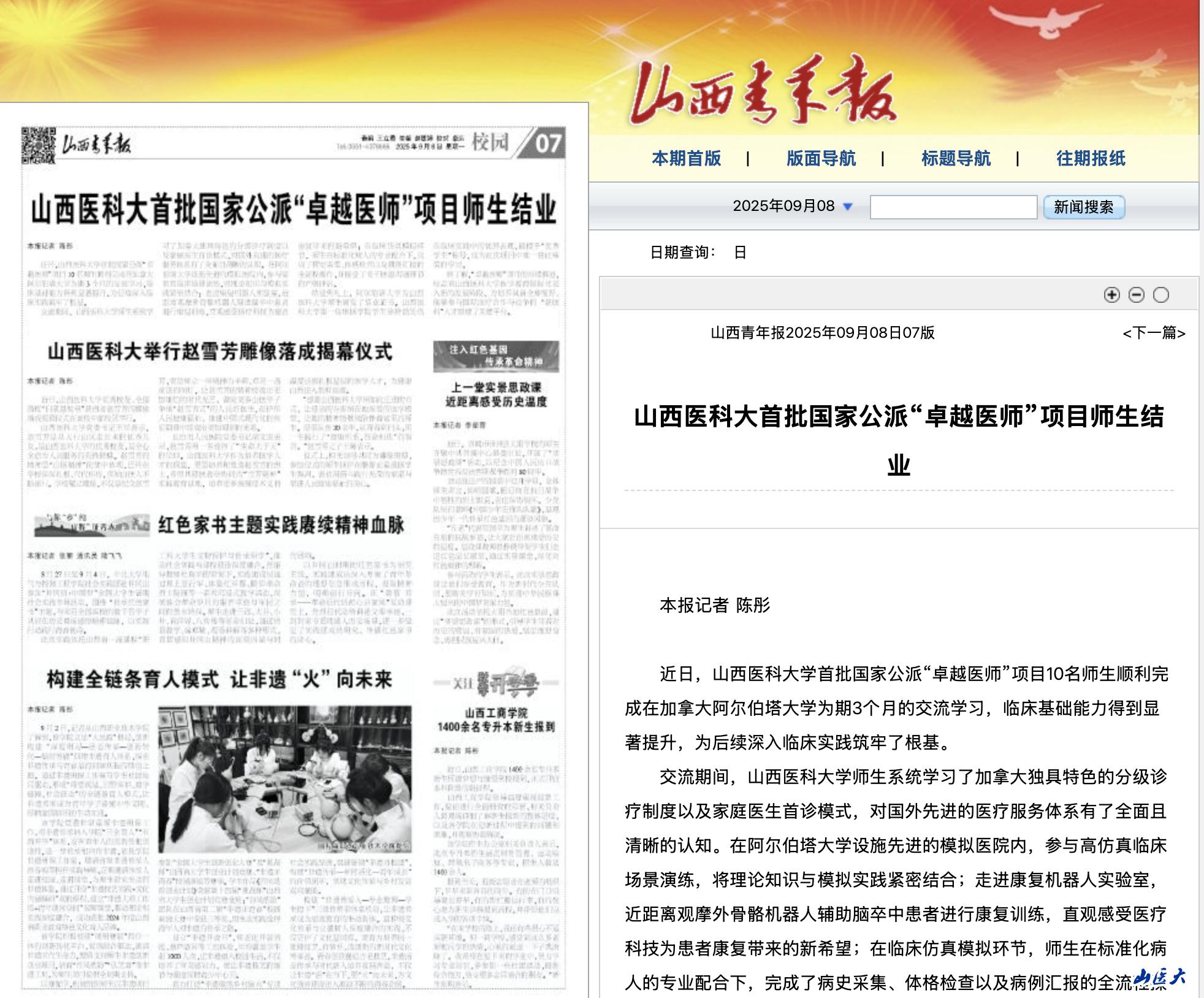 9月9日,《中国教育报》“教改风采”版刊发我校党委书记王军、校长解军的署名文章《推进“大思政课”建设 深化医德教育改革——国产亚洲精品美女久久久_99久无码中文字幕一本久道_亚洲成AV人影院_亚洲AV影院一区二区三区 狠狠躁夜夜躁人人爽天天不卡_国产激情久久久久影院老熟女_精品性高朝久久久久久久“大思政—1345”“新医德”育人模式的探索与实践》。文章从“根植红色基因 百年文脉筑牢学校医德教育之魂”“紧扣时代之问 三阶段迭代升级学校医德教育模式”“深化系统创新 夯实学校医德教育核心架构”“坚持以生为本 打造‘五位一体’医德教育矩阵”“直面现实之需 问题导向破解学校...