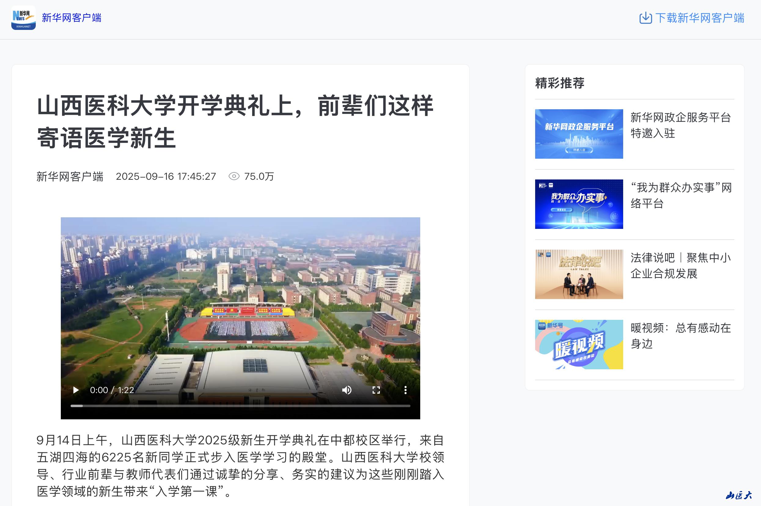 9月14日上午,我校2025级新生开学典礼在中都校区风雨操场举行。来自五湖四海的6225名新同学汇聚山医,展现蓬勃朝气,昂扬青春自信,共同迎接学业生涯的新起点。晋中市政府副市长张拥军,清华大学长聘教授、基础医学院院长李海涛,华大集团相关专家,我校党委书记王军,校长解军,校党委副书记彭月兰,省纪委监委驻校纪检监察组组长、校党委常委杨文斌,副校长张岩波,校党委常委、副校长焦向英、武志芳,第二临床医学院党委书记...