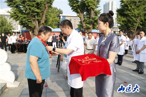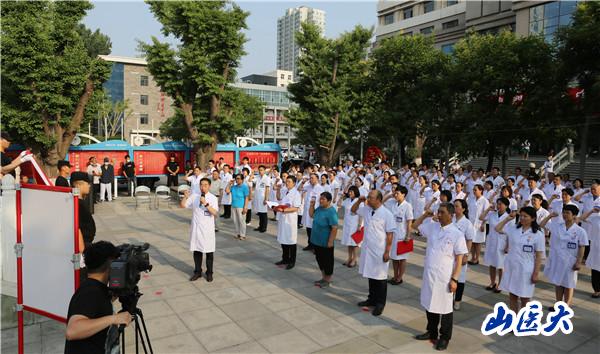 7月1日,在中国共产党成立101周年之际,第一医院在1号住院楼前广场举行“光荣在党50年”纪念章颁发暨新党员入党宣誓仪式。全体院党委委员,各党支部书记、副书记,获得“光荣在党50年”纪念章的老党员代表和2022年新入党的职工党员共计100余人参加了仪式。院党委副书记、院长张瑞平主持仪式。