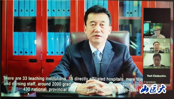 刘春在致辞中代表学校对大会召开致以热烈祝贺,对俄方嘉宾表示热烈欢迎。他指出中俄各领域合作紧密,成果斐然,希望双方以此次会议为契机,加强沟通协作,深挖合作潜力,宽领域、全方位推进务实合作,促进区域高等医学教育和医疗卫生服务质量的提升,为全球卫生健康事业的发展做出积极贡献。