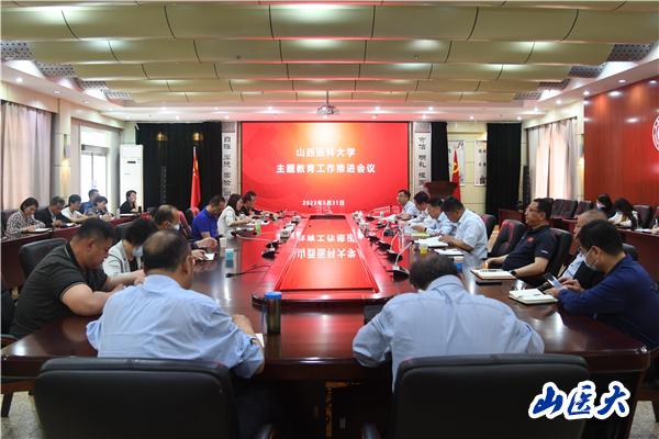 5月31日上午,学校学习贯彻习近平新时代中国特色社会主义思想主题教育第五次工作推进会在迎泽校区第一会议室召开。校党委副书记、学校主题教育领导小组第一副组长兼办公室主任王宏伟主持会议并讲话,主题教育领导小组办公室各工作组组长及工作人员、各院(系)级单位党组织书记参加会议。