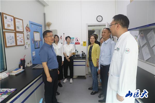 王军一行实地察看了口腔医学院科研实验室和临床基础实验室,口腔医学院党政班子就学院“十四五”规划作了专项汇报。王军指出,医学院是教学、科研、临床“三者合一”,医学院教师是师者、学者、医者“三者合一”。口腔医学院要建设研究应用型学科,努力把前沿科研成果进行转化,真正落实到人民健康最需要的地方,把学生培养成人民最需要的好医生。教师不仅要善于倾听学生的声音,帮助学生创新性地提出自己的想法并积极开展科研,而且要鼓励学生投身医学事业,为增进人民健康福祉努力学习、矢志奋斗。他强调,要坚守为党育人、为国育才职责使命,把“仁心仁术”育人理念贯穿医学人才培养全过程,培养医德高尚、医术精湛的人民健康守护者。在教育教学中,要不断优化教育结构、学科结构、评价体系和成果转化等体系,全面提升办学质量。