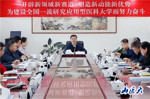 会议要求,要紧密结合学校工作实际抓好会议精神的落实落地,坚定砥砺奋进的信心、明确开局起步的重点,抢抓机遇、踔厉奋发,以新气象新作为推动学校高质量发展取得新成效。要深刻学习领会,充分认识当前面临的战略机遇、转型态势和问题挑战,抢抓发展机遇,牢牢扛起省委、省政府赋予学校的“双一流”创建任务,落实好“2+1+1”学科发展思路,凝心聚力打造特种医学一流学科突破点,培育法医学一流学科增长点,建设高水平公共卫生学院和山西数字“医谷”核心区。要加强科技创新,紧紧围绕“四个面向”,进一步加强校校、校企、校地等合作,建设更多的创新联合体,推动“四链融合”,主动服务国家高水平科技自立自强和我省科技强省战略。要守牢安全底线,强化底线意识、极限思维,持续深入开展安全隐患排查整治,防范化解风险,把安全稳定工作贯穿学校事业发展各领域、全过程。要全力推动落实,坚持问题导向、目标导向、结果导向,聚焦关键环节,突出工作重点,对照年初确定的目标任务,全面盘点、查漏补缺,精心谋划好学校2024年的重点工作,做到及早部署、迅速行动、精准施策,以高质量落实推进全国一流研究应用型医科大学建设。