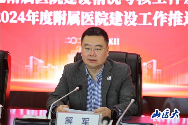 1月5日上午,我校在中都校区教学办公楼五层会议室召开“新建附属医院建设情况考核工作反馈暨2024年度附属医院建设工作推进会”。校党委书记王军,校长解军,校党委常委、副校长刘春,学校办公室、教务部、科学技术部、人事部、研究生学院、医院管理部负责人,18所附属医院和教学医院的党委书记、院长、分管副院长和科教部门负责人等参加了会议。会上,王军作了题为《建章立制促规范,强化保障提能效,以附属医院高质量发展为学校“双一流”建设提质增效》的讲话,会议由解军主持。