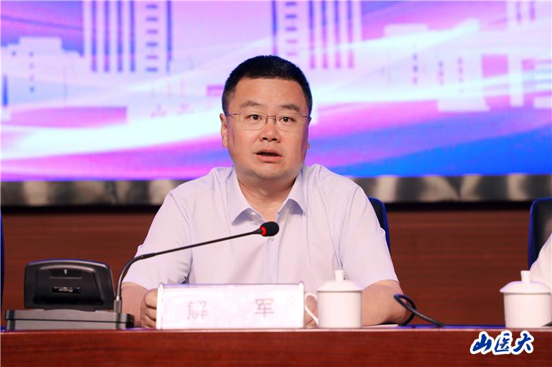 解军以“稳中有进、厚积待发”概括了学校上半年所取得的突出成绩,就下半年重点工作进行了安排。他指出,面对高质量发展的紧迫任务,要多管齐下牢固底板,强化“5+3”一体化人才培养,构建“卓越班”“本-硕-博”一体化贯通培养模式,全力做好专业认证工作,加快推进“一站式”学生社区建设。要千方百计补齐短板,深化科研机制改革,推动科研成果质量、数量同步提升。坚持“1+2”乘2的人才工作思路,持续实施院士育引计划,积极拓宽青年招引渠道。要多措并举做强长板,加大“双一流”学科创建支持力度,带动相关学科协同发展,打造高峰学科集群;拓展与清华、华大等合作广度和深度,保障协同创新成果产出,不断提升科技自主创新能力。要想方设法锻造新板,推动科创团队入驻“晋创谷”。以数字“医谷”建设为契机,发展人工智能等新兴技术。建立“招生-培养-就业”闭环联动机制,深化绩效管理和分配改革,全力办好民生实事,努力开创学校高质量发展新局面。