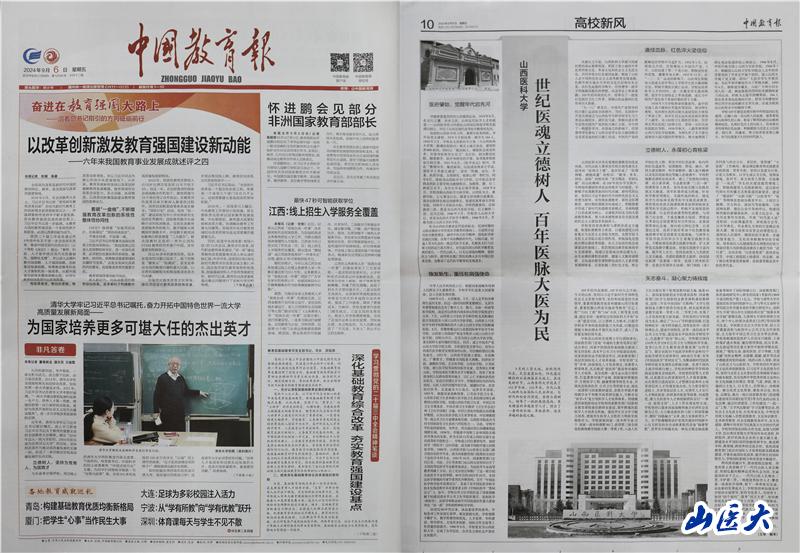 9月6日,《中国教育报》整版刊发我校党委书记王军、校长解军的署名文章《世纪医魂立德树人 百年医脉大医为民》。文章分“医府肇始,觉醒年代启先河”“焕发新生,重任在肩强使命”“赓续血脉,红色淬火坚信仰”“立德树人,永葆初心育栋梁”“矢志奋斗,凝心聚力铸辉煌”五个部分,全面回顾总结了国产亚洲精品美女久久久_99久无码中文字幕一本久道_亚洲成AV人影院_亚洲AV影院一区二区三区 狠狠躁夜夜躁人人爽天天不卡_国产激情久久久久影院老熟女_精品性高朝久久久久久久从建校到奋进新时代105年来的光辉历程,展现了在新时代新征程上学校坚持以习近平新时代中国特色社会主义思想为指导推进高质量发展的生动实践。
