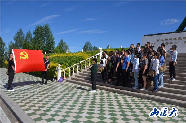 在右玉县“绿化丰碑”雕塑前,全体学员集体重温入党誓词。在管理学院党委书记李红梅领誓下,党员们举起右拳,面对鲜红的党旗庄严宣誓,在铮铮誓言中,进一步强化党员身份意识、宗旨意识和责任意识,深刻领会共产党员的政治责任、工作担当和光荣使命,更加坚定为党的事业奋斗终身的决心和信念。
