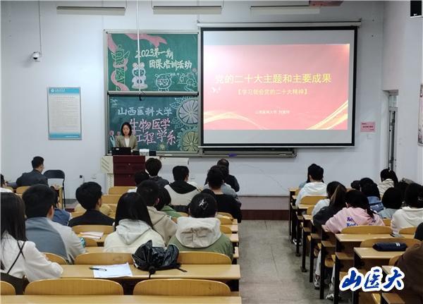 4月20日晚,开展了本学期“学习贯彻二十大 青春奋进新时代”主题团课培训,辅导员宣讲团刘慧玲主讲。生物医学工程学系党总支书记秦娜、思想政治辅导员赵正、系分团委工作负责人许浩,全体本科生参加了此次培训。