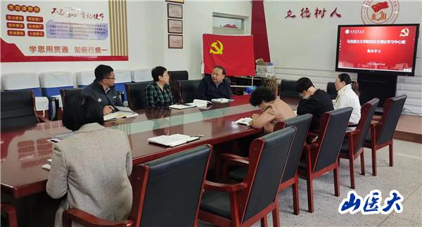 10月18日上午,马克思主义学院党总支理论学习中心组召开集体学习会,专题学习《中国式现代化面对面》,基础医学院党委书记王卓列席旁听指导。会议由党总支书记董海涛主持。