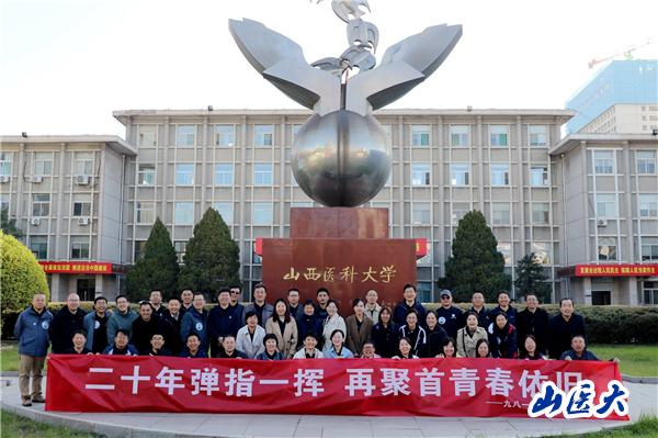 10月14日,我校第一临床医学院临床医学专业2003届50余名校友从祖国各地返回母校,共同纪念毕业二十年。校友们一早就来到迎泽校区,走过曾经走过的路,呼吸曾经呼吸过的空气,回想起大学五年的点点滴滴,校友们不禁感慨万千、热泪盈眶,并一起合影留念。思想政治辅导员王素萍老师代表学校对校友们欢聚母校表示热烈欢迎。随后,校友们来到中都校区,参观了校史馆,了解了母校百年厚重的历史。中都校区宽阔平坦的校园广场、恢弘大气的图书馆、秋意盎然的美丽风景,惊艳了所有的校友。本次聚会采取了线上直播的方式,让所有未能到场的校友充分感受到师生情、校友情、母校情,分享了参与活动的喜悦和感动。