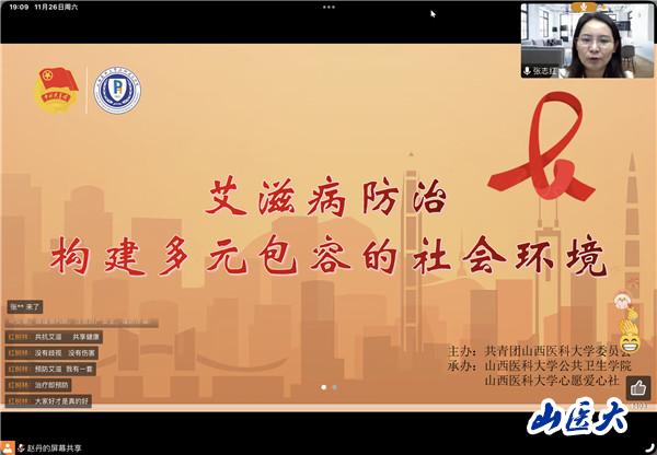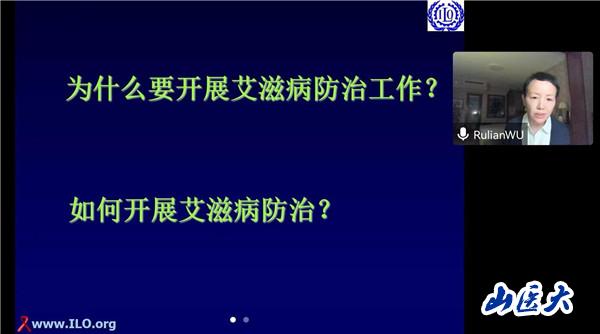 为进一步宣传艾滋病防治知识,引导青年学生知艾防艾、共享健康,在第35个“世界艾滋病日”来临之际,校团委与公共卫生学院于11月26日晚联合举办了防艾健康教育专题讲座,邀请我校1990级公卫优秀校友、国际劳工组织项目官员武汝廉老师主讲。讲座以腾讯会议形式开展,榆次区疾病预防控制中心艾滋病科副主任医师刘佰成、公共卫生学院党委书记张志红、校团委李烨老师和全校300余名学生参加,公共卫生学院分团委书记张瑾主持讲座。
