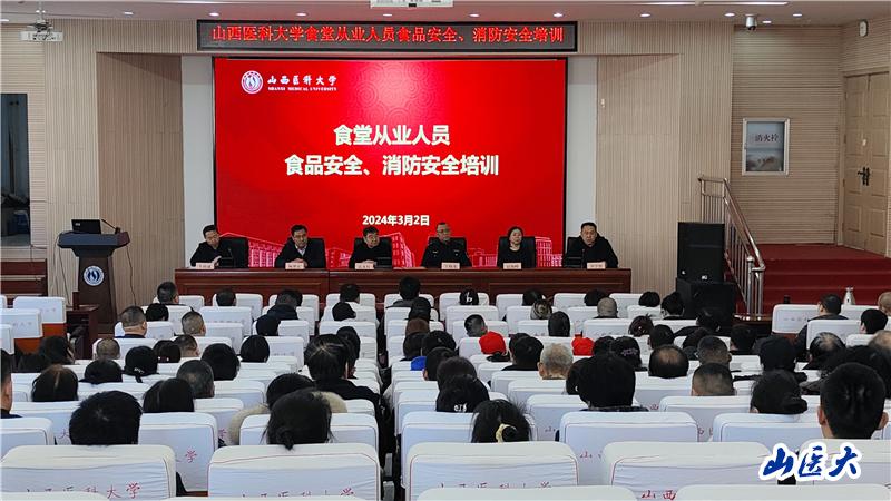 为了深入贯彻落实《中华人民共和国食品安全法》及其实施条例、《企业落实食品安全主体责任监督管理规定》和学校关于进一步做好消防安全工作的通知精神,进一步提升食堂从业人员的专业素养和安全意识,3月2日下午,后勤保障部联合武装保卫部、科技产业开发中心在中都校区基础医学院报告厅举办了食品安全和消防安全培训。迎泽校区、中都校区食堂和大学生服务中心的从业人员、管理人员和原材料供货人员等参加了培训。晋中市市场监管综合行政执法队二分队队长王晓光、学校科技产业开发中心主任高永红、后勤保障部党总支副书记杨艳宏、武装保卫部消防管理中心主任李学智到会指导,会议由后勤保障部饮食管理科科长牛拴成主持。