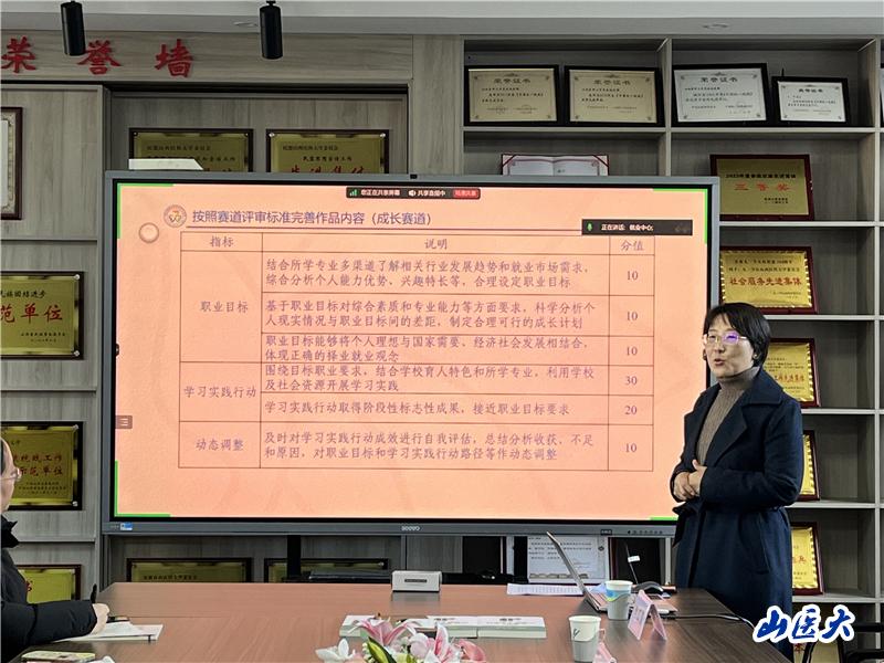 作为山西省高校就业创业指导师资库成员,李红霞老师以“筑梦青春,规划未来”为主题,结合自身工作,分享了一系列辅导员在大学生职业规划和就业指导工作中的方法和经验,并以首届大学生职业规划大赛中的优秀案例和其取得的优异成绩为样本,详细阐述了辅导员在大学生职业规划大赛中所扮演的重要角色,以及如何通过科学的指导和有效的辅导,帮助学生提升职业规划能力,增强就业竞争力。同时,她建议辅导员要深入了解学生的专业背景、兴趣爱好和职业规划目标,帮助学生明确个人定位,制定科学合理的职业规划方案,还要注重培养学生的创新思维和实践能力,鼓励学生积极参加各类社会实践和志愿服务活动,丰富自己的社会经验和人生阅历。