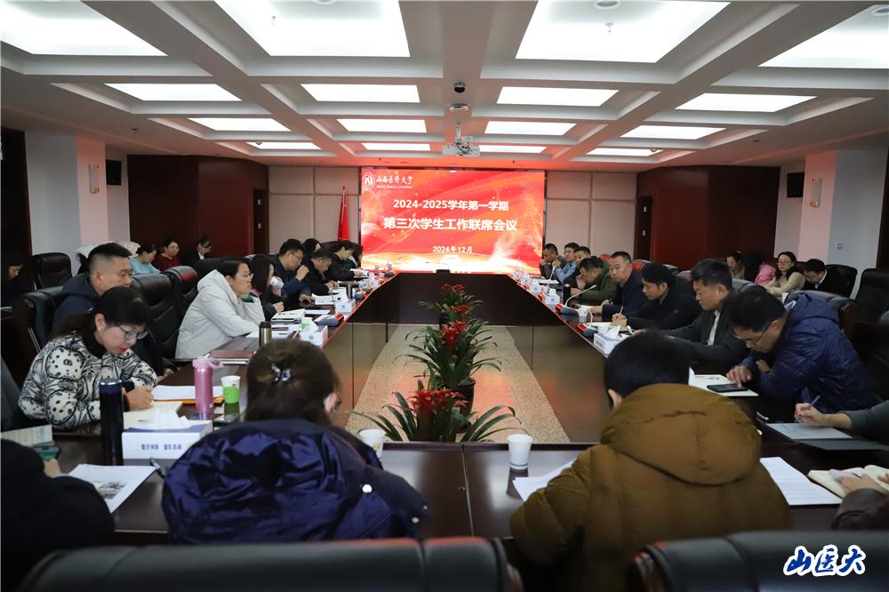 12月9日上午,学校召开学生工作联席会就近期学生安全稳定工作进行专题研究。学校相关职能部门、各学院(系、部)负责人参加,学生工作部部长张晶主持。