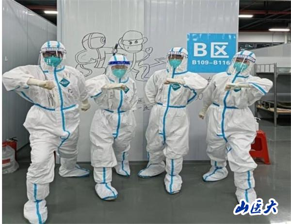 队员们来自不同科室,但很快建立起默契,组长也根据队员的特点与专长进行了分工,使得小组内每一项工作得以顺利高效完成。我们还同时承担舱内的保洁工作,几十个卫生间逐一进行清扫、消毒,一圈下来汗水在防护服里直流,但看着整理后的卫生间整洁干净还是有满满的成就感,也忘却了疲惫。