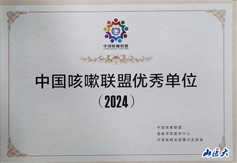 12月14日,国家呼吸医学中心——中国咳嗽联盟组织开展的“咳嗽亚专科能力提升项目”——慢性咳嗽亚专科建设项目全国启动会在广州举办,我校第一医院呼吸与危重症医学科作为中国咳嗽联盟单位,一直致力于慢性咳嗽的精准诊断和治疗,在山西省率先开展诱导痰检测和辣椒素咳嗽激发试验,参与多项全国多中心慢性咳嗽临床研究,此次荣获省内唯一一家“2024年中国咳嗽联盟优秀单位”称号。
