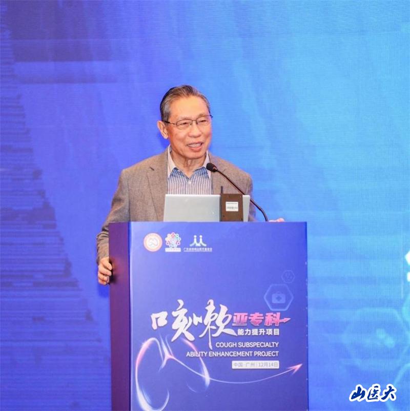 呼吸疾病科研与临床领头人钟南山院士莅临现场致辞,与中国咳嗽联盟主席赖克方等近150名全国呼吸领域同道共同启动项目,推动慢性咳嗽亚专科建设与诊治能力的提升。启动会上,我校第一医院呼吸与危重症医学科哮喘与过敏亚专业负责人蒋毅主任医师当选慢性咳嗽亚专科建设项目山西省工作组组长,刘晓君主治医师当选慢性咳嗽亚专科建设项目山西省工作组秘书。蒋毅介绍了山西省咳嗽亚专科建设前期准备工作、存在问题、建设计划、面临挑战及应对措施。