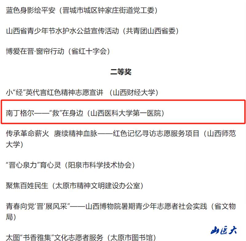 我校第一医院志愿服务项目“南丁格尔‘救’在身边”荣获山西省首届新时代志愿服务项目大赛二等奖