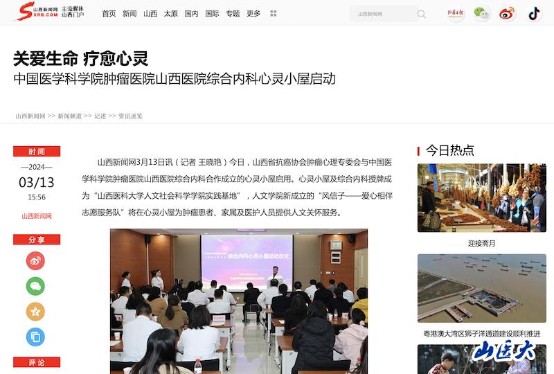 山西新闻网 | 关爱生命 疗愈心灵 中国医学科学院肿瘤医院山西医院综合内科心灵小屋启动