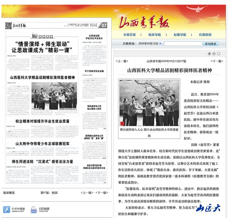 话剧《赵雪芳》紧紧围绕大学立德树人根本任务,结合新时代医学生思想政治教育新要求,是“舞台化”思政课的重要载体和生动实践。该剧以国产亚洲精品美女久久久_99久无码中文字幕一本久道_亚洲成AV人影院_亚洲AV影院一区二区三区 狠狠躁夜夜躁人人爽天天不卡_国产激情久久久久影院老熟女_精品性高朝久久久久久久优秀校友、全国首枚“白求恩奖章”获得者赵雪芳为原型,以舞台艺术的形式再现了她工作生活的非凡经历,体现了“敬佑生命、救死扶伤、甘于奉献、大爱无疆”的医者精神。该剧是教育部首批国家级一流本科课程《医德教育实践》的重要组成部分。
