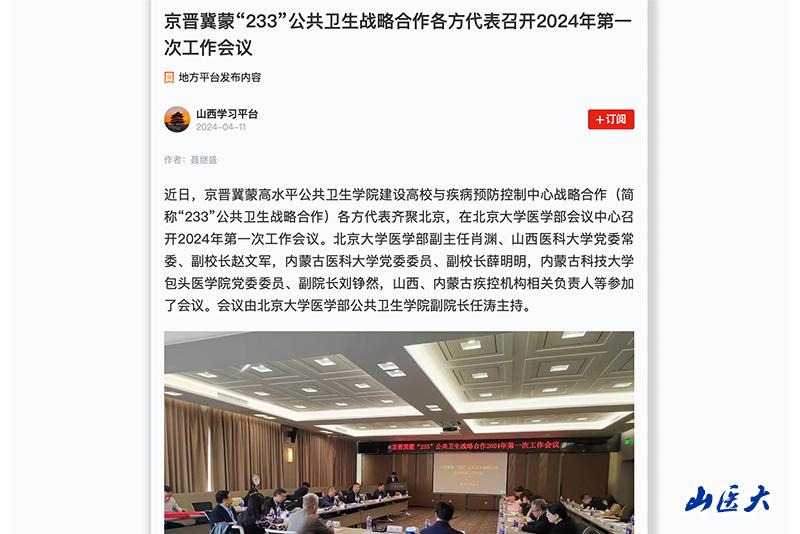 学习强国 | 京晋冀蒙“233”公共卫生战略合作各方代表召开2024年第一次工作会议