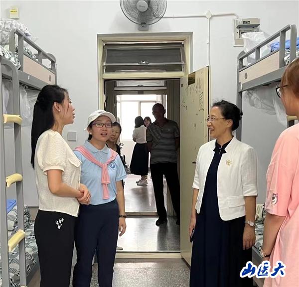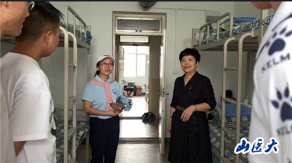 为切实了解新生到校的适应情况,下午,校党委常委、副校长刘春,护理学院党委书记、院长韩世范,副院长商临萍、郭锦丽等学院领导、老师,一一走访学生寝室,亲切看望刚入学报到的新生,给新同学带去问候与关心,详细询问了新生们的生源地、对专业、学院的认知等相关情况和来校生活的适应情况,叮嘱同学们要相互关心、相互学习、相互包容,加强安全防范,遇到问题要及时与辅导员联系,寻求帮助。亲切的关心拉近了彼此间的距离,新同学和家长们纷纷表示:真切地感受到护理学院的温暖,对未来四年的大学生活充满期待。