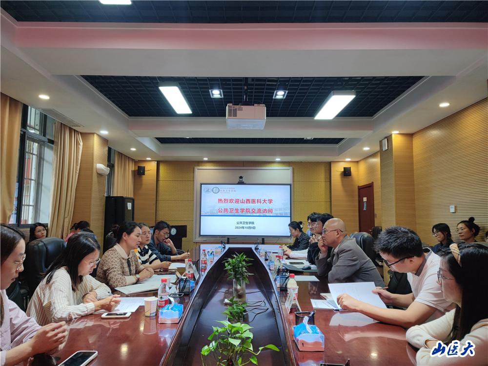 为进一步推动高水平公共卫生学院建设,提升高层次人才引育工作水平,10月9日,我校公共卫生学院党委书记张志红带领调研人员一行3人,赴华中科技大学同济医学院公共卫生学院进行调研学习与座谈交流。华中科技大学同济医学院公共卫生学院院长潘安、党委副书记郑伟、学工办主任蒲琳及部分博士生参加了会议,座谈会在华中科技大学公共卫生学院会议室召开。