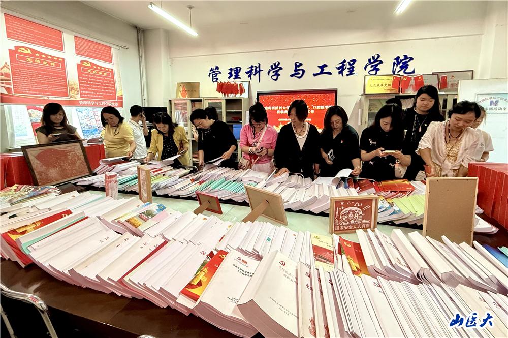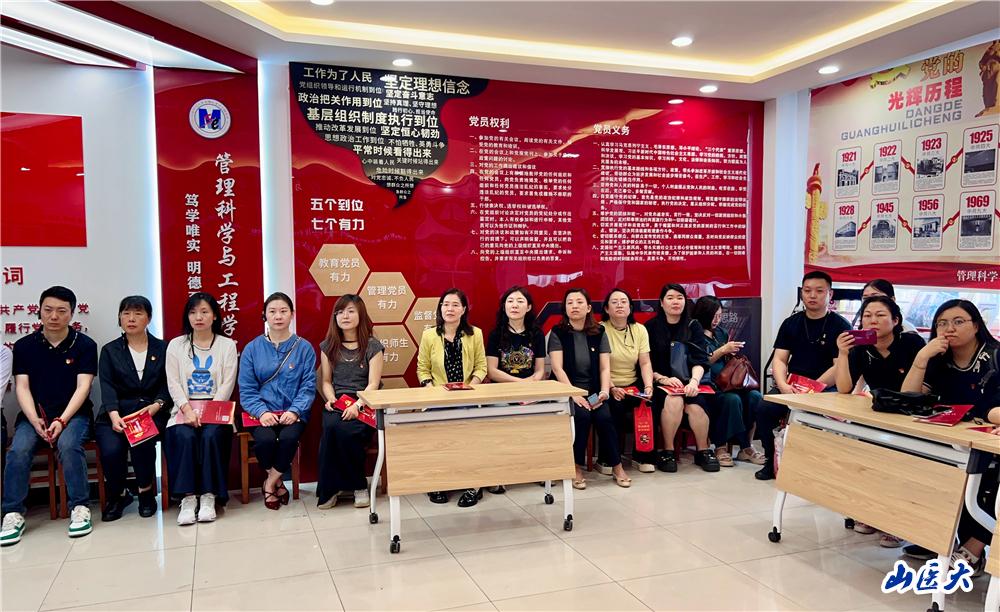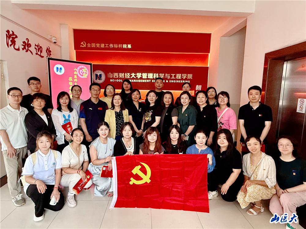 为深入学习全国党建工作标杆院系的先进经验,提升基层党组织建设质量,7月3日上午,我校口腔医学院(口腔医院)党委联合体育教学部(运动康复系)党总支赴全国党建工作标杆院系、山西财经大学管理科学与工程学院党委开展联组共学活动。活动由口腔医学院(口腔医院)党委书记任秀云与体育教学部(运动康复系)党总支书记殷凤带队,山西财经大学管理科学与工程学院党委副书记陈霞全程陪同讲解,两院系党支部委员等共同参加活动。