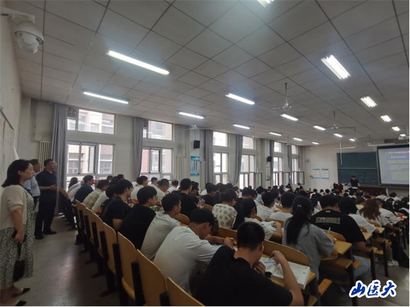 课间时间,焦向英就课堂基本要求、板书与课件、学生教材、电子产品使用、附属医院教师教学水平等问题与部分教学单位管理人员进行了深入的交流。