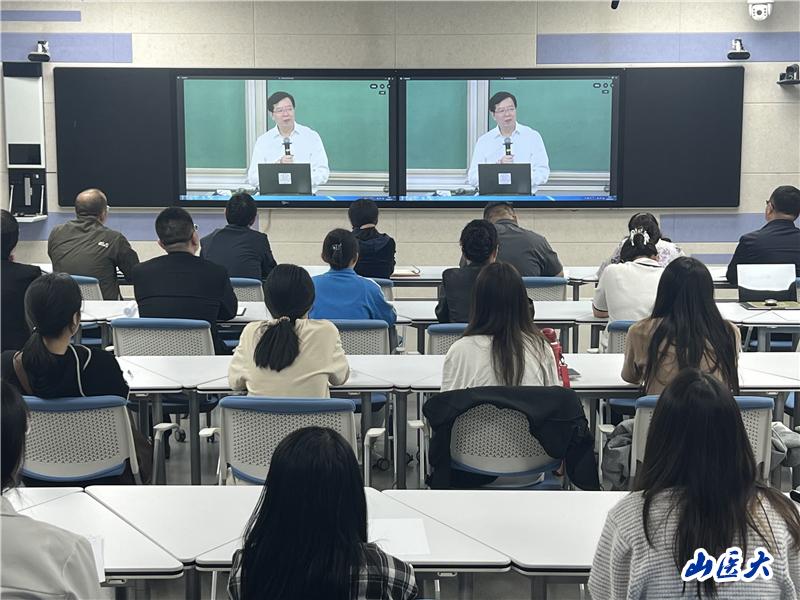 为深入贯彻落实《教育部关于加强新时代高校“形势与政策”课建设的若干意见》,更好地发挥“形势与政策”课程在立德树人方面的重要作用,9月11日晚,依托清华学堂在线雨课堂平台,我校师生以“同步异校”模式在云端与清华大学师生相聚,共同聆听由清华大学党委书记、中国科学院院士邱勇讲授的新版《形势与政策》第一课。学校领导、党委宣传部、教务部、马克思主义学院“形势与政策”课全体教师与2022级部分专业的学生一同学习观摩。