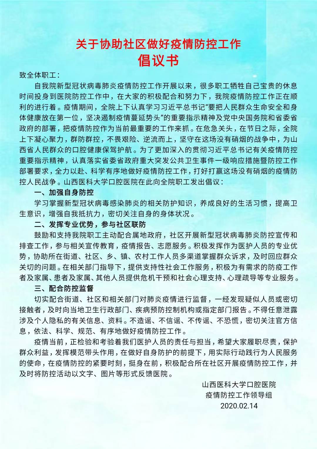 关于协助社区做好疫情防控工作倡议书