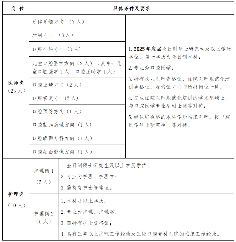 (五)具有岗位所需的学历学位、专业或技能条件(报考者为2025年普通高校应届毕业生的,其毕业证书、学位证书、住院医师规范化培训合格证书、护士资格证等岗位所要求的资格证书须在2025年12月底前取得);