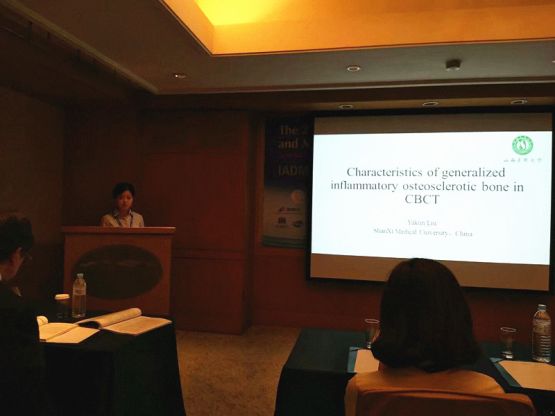 本届大会包括颞下颌关节疾病、口腔肿瘤学和临床诊断3个主题。大会期间,刘亚昆同学以《广泛型炎性硬化骨的CBCT特点》为题做了专场汇报。汇报中,她在全世界范围内首次提出了炎性硬化骨这一概念,并对其进行了分类,系统地阐述了广泛型炎性硬化骨这一骨性疾病与相似疾病的鉴别诊断、CBCT特点及临床意义,得到了国内外专家学者的一致认可,炎性硬化骨概念的提出对于促进口腔临床工作的改善,提升临床诊疗服务水平具有十分重要的意义。