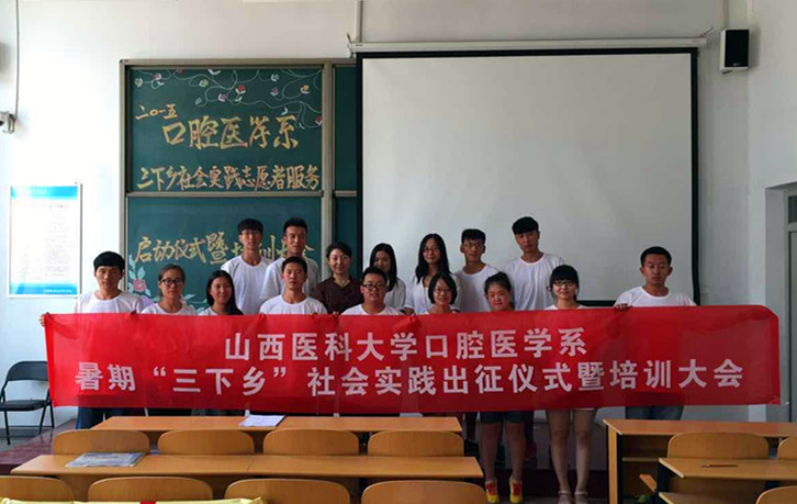 本次暑期社会实践的意义和内容向志愿者们做了介绍,并就活动相关事项进行了培训,重点强调了活动的安全性。殷凤副书记表示:开展大学生暑期社会实践活动,是帮助大学生成长的重要途径。长期以来,学校及院系始终坚持以“提高大学生综合素质”为育人目标,口腔医学系结合专业特点,探索形成了“项目带动”活动的实践育人模式,多年来取得较好的成效,希望同学们再接再厉,紧密围绕专业实践主题,积极开展社会实践活动,并撰写社会实践调查报告。她对全体队员提出三点希望:一是把握实践机会,认真了解国情、认识社会、接触群众,增加阅历,在实践中成长成才。二是要在实践中开阔眼界,发挥专业优势,脚踏实地的服务于农村。三是分团委要精心组织,确保安全的前提下,务求活动取得实效。