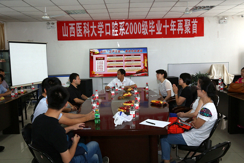 校友中,有专程从国外赶回来的,也有从北京、上海、深圳、广州、山东等地赶回来参加聚会的。十年,同学们再回到熟悉的校园,深怀对母校和同学的深情,拥抱问候,热情交谈,互相倾诉师生情谊。座谈会由原2000级口腔医学系班长李志耀主持,特邀了口腔医学系(口腔医院)赵彬副院长(主持工作)、殷凤副书记参加。