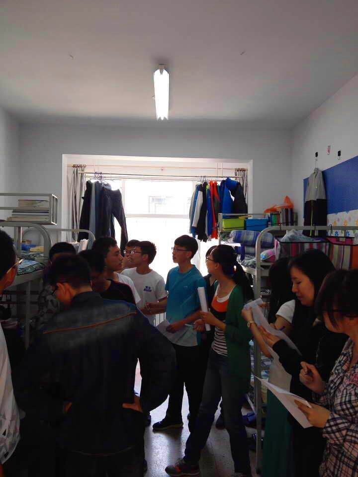 4月27日下午,思想政治辅导员侯芳宇老师带领2014级学生率先开展了“优雅宿舍“的评比活动。由大一年级的班委、宿舍长等组成的评审小组,分别检查参观了14级男、女生宿舍,并对宿舍内涉及到的有关寝室安全、宿舍卫生、内务、装扮等方面进行了评比打分,最终评选出本年级的两个“优雅宿舍”。在检查评比过程中,侯芳宇老师反复强调,寝室作为学生休息生活的小空间,安全问题尤为重要,宿舍每一位同学都应该对宿舍安全细节问题进行全方位的考虑,及时消除宿舍内存在的安全隐患,共同营造和睦、安全宿舍环境。