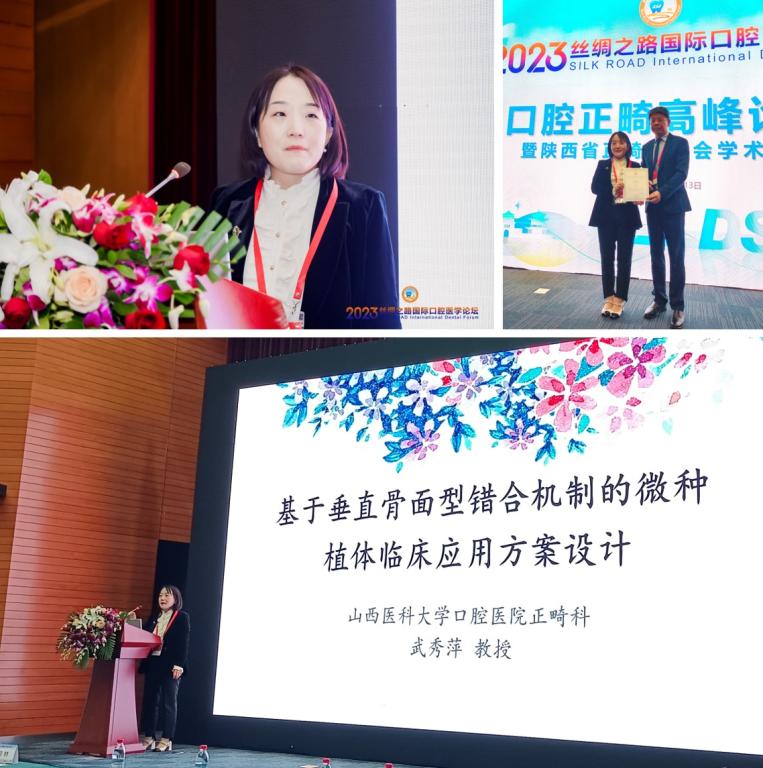 本次论坛由全国口腔知名专家,对口腔修复、儿童口腔医学、牙体牙髓病学、牙及牙槽外科、牙周、颅颌面再生、口腔护理、口腔临床试验、种植论坛、正畸、口腔麻醉等进行了专业化、国际化、多样化的精彩讲解。在会议的第七届丝绸之路口腔正畸高峰论坛中,我院武秀萍教授受邀进行了题为《基于垂直骨面型错合机制的微种植体临床应用方案设计》的主题讲座,她以严谨的科学态度、幽默风趣的演讲风格为参会代表带来精彩的分享。