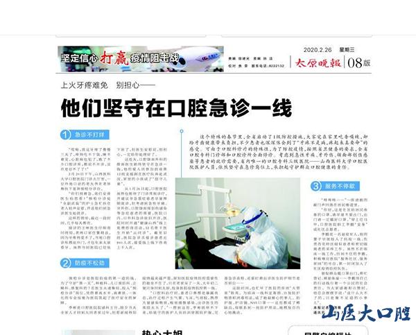 太原晚报专题报道我院疫情期间工作----他们坚守在口腔急诊一线-国产亚洲精品美女久久久_99久无码中文字幕一本久道_亚洲成AV人影院_亚洲AV影院一区二区三区 狠狠躁夜夜躁人人爽天天不卡_国产激情久久久久影院老熟女_精品性高朝久久久久久久口腔医院