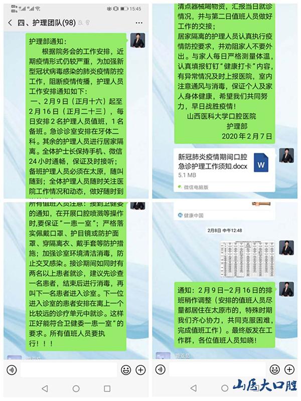 战“疫”有我,王君同志作为一名共产党员,作为护理团队的带队人,为了保证疫情期间的正常工作,立即动员我院护理人员依法依规落实各项战“疫”决策,做好物资储备和调配、加强疫情知识培训、循环宣传疫情防控,立即规范了《防护用品领用表》、《新冠肺炎疫情期间口腔急诊护理工作须知》等工作制度,统一安排临床需求,把防控工作做到了实处。