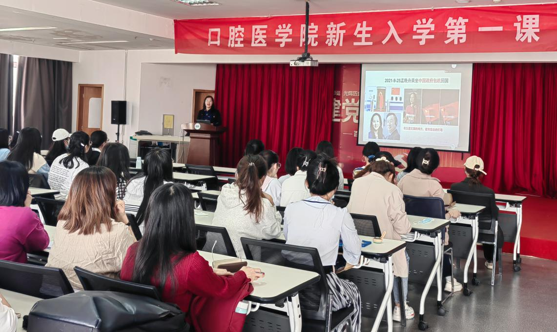 赵彬院长为新生介绍了学校与学院的发展历史与成就。他强调,医学教育的本质是精英教育,研究生教育是全科性的教育,年轻人要脚踏实地、坚守品格,以社会精英的标准严格要求自己,同时也要抓住一切机会去临床参与实践,争取早日成为一名合格的口腔全科大夫。
