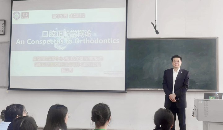 讲座中,赵志河教授首先以一例经典的临床病例导入,用深入浅出的语言讲述了口腔错颌畸形的成因、发生机制、临床表现及治疗原则。随后简述了正畸学的发展史以及我国正畸学前辈的突出贡献,并引用《论语》中的名言“工欲善其事,必先利其器”,总结了正畸材料和新技术的发展对正畸学科发展的重要作用。最后,他还与同学们分享了一张来自国际口腔医学博物馆的旧照,展示了老一辈口腔人在艰苦环境下对口腔学科孜孜不倦的奋斗和追求。他强调,学好口腔正畸学不仅要关注书本知识,更要放眼学科发展,为正畸学的未来添砖加瓦。