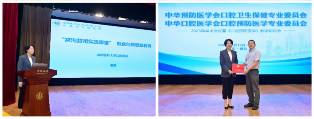 会议内容主要包括两大部分。第一部分是口腔预防医学学术会议,中华预防医学会微生态专委会委员朱宝利教授,香港大学牙学院卢展民教授等进行了精彩的学术报告。第二部分是口腔预防医学教学培训会,内容包括课程建设经验交流和优秀思政案例展示,有7个院校做会议交流展示。我院儿口预防科曹荟老师在大会上做了题为“窝沟封闭实践课堂融合创新思政教育”的案例展示,重点阐述思政元素如何与专业知识相结合,并通过课程育人、实践育人的途径最终达到立德树人的目的。她的发言受到了与会专家的高度评价,标志着我院口腔预防教学工作迈上新台阶。