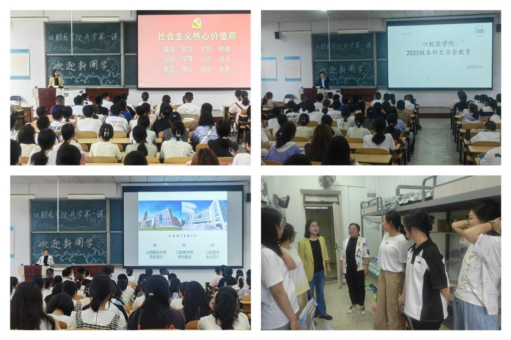 在“开学第一课”教育活动中,院党委书记任秀云教授为新生做了爱国主义教育和生命教育,用社会主义核心价值观为青年一代带来源源不断的正能量。党委副书记、副院长李冰教授做了安全教育,对新生生活、出行、学习等各方面事无巨细地进行叮嘱。副院长张芳教授对我校口腔医学的伟大历程与专业文化做了全面的讲解。课后,院领导在新生辅导员的陪同下,走访了学生宿舍,与天南海北的新生畅聊学习、生活和各地风土人情。