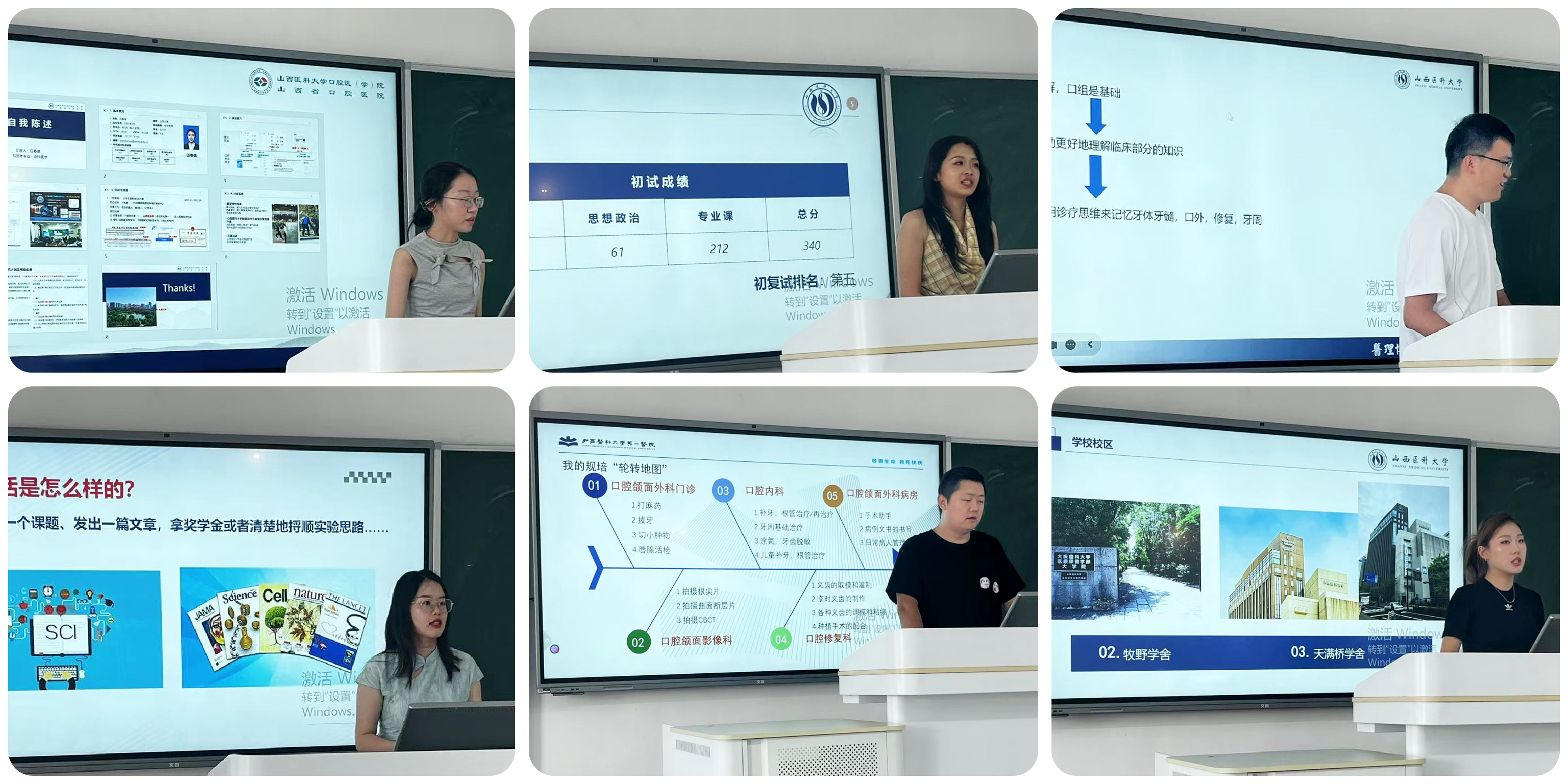 在“职业规划与经验分享”方面,副院长王兴深入剖析医学考研趋势,从院校选择、复习策略到心态调整,为学生指明备考方向。本校4名优秀校友为实习生们分享了考研实战经验,包括时间管理、答题技巧等“干货”,助力学生高效备考。山大一院规培学员马亮医生为学生们详细介绍了培训内容、考核要求及生活待遇等方面内容,帮助学生提前了解住院医师规范化培训体系。赴日留学博士王丹老师生动有趣地讲述了海外求学经历,拓宽学生职业发展思路,激发对国际化医疗体系的思考。