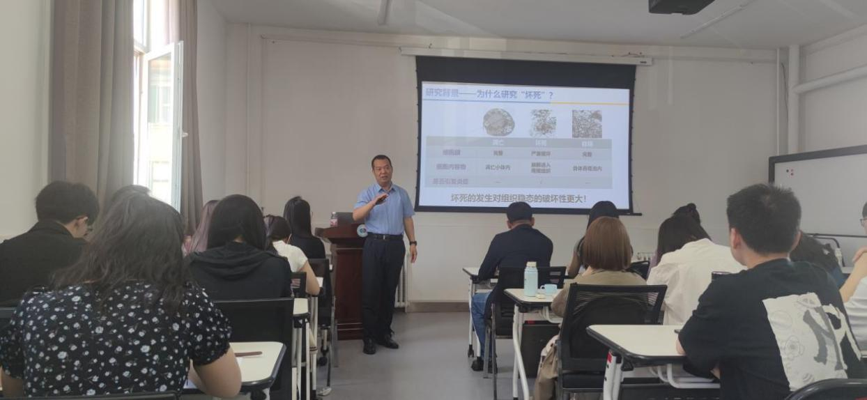 于世宾教授在王兴副院长陪同下参观科研楼,并于5月14日为研究生作“程序性坏死在TMJOA软骨退变中的作用机制研究”专题讲座。他分享前沿科研动态,鼓励学生勇于探索、创新思维,为研究生科研学习提供重要启发。于教授还就颞下颌关节科教学提出具体建议,强调跨学科思维培养,加强临床实习与病例分析训练,助力学生临床诊疗能力提升。
