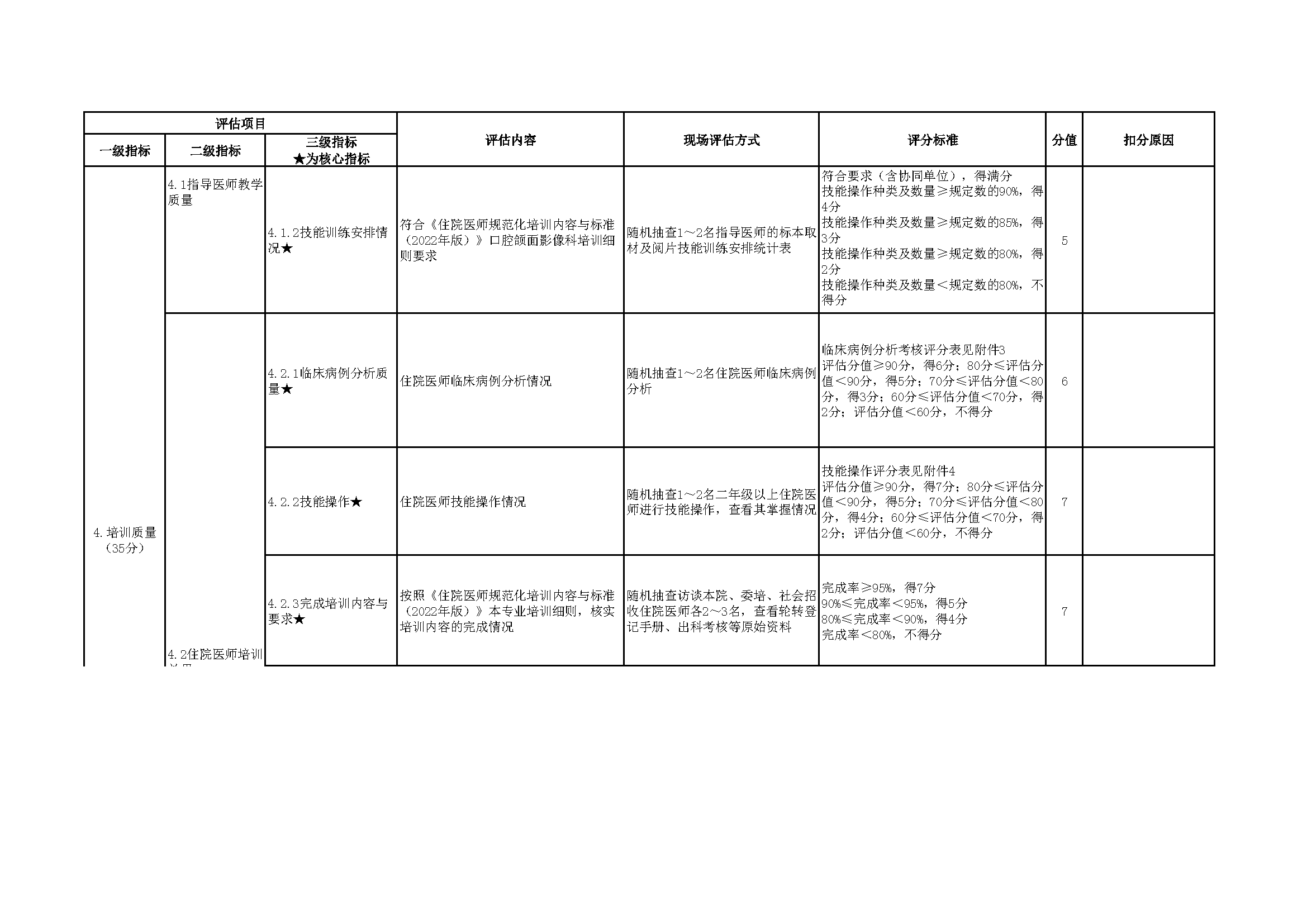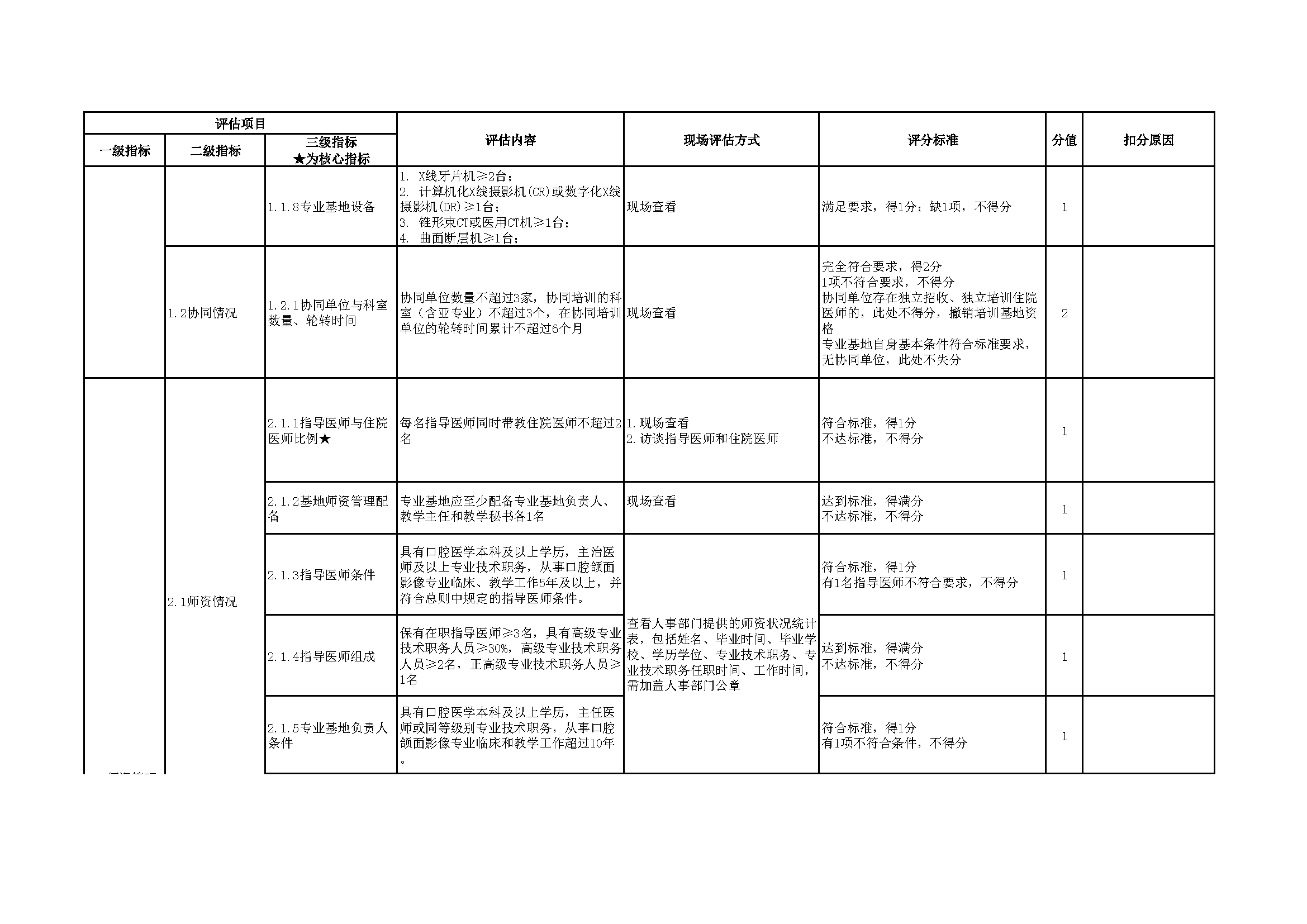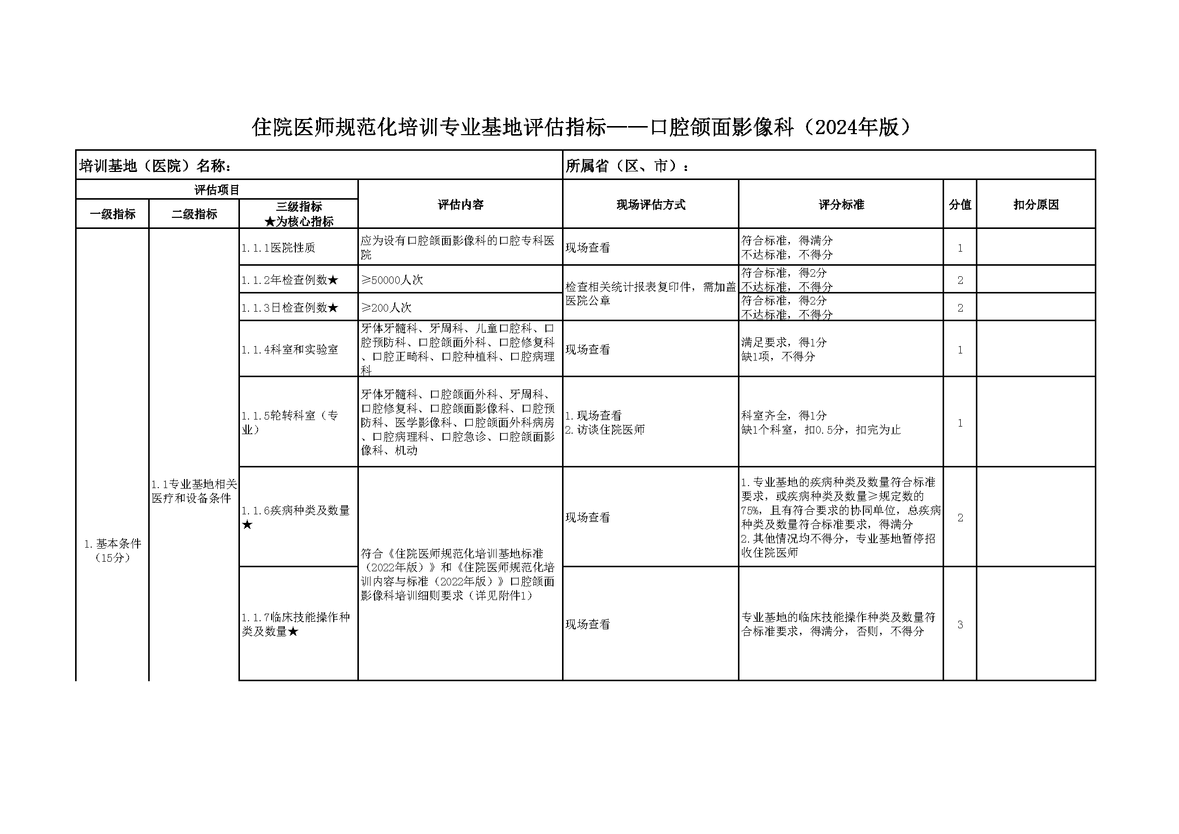 住院医师规范化培训专业基地评估指标(2024年版)—口腔颌面影像科