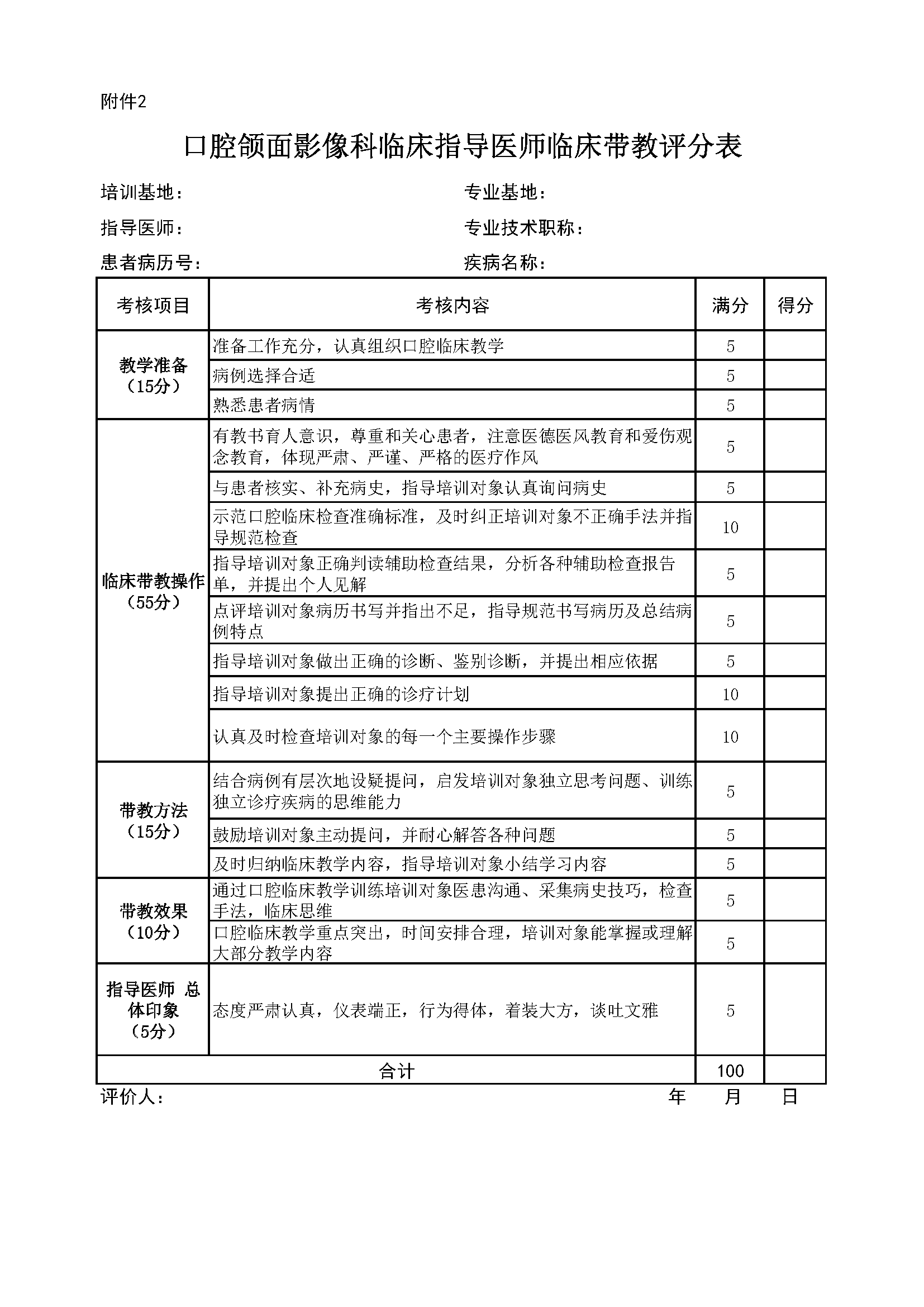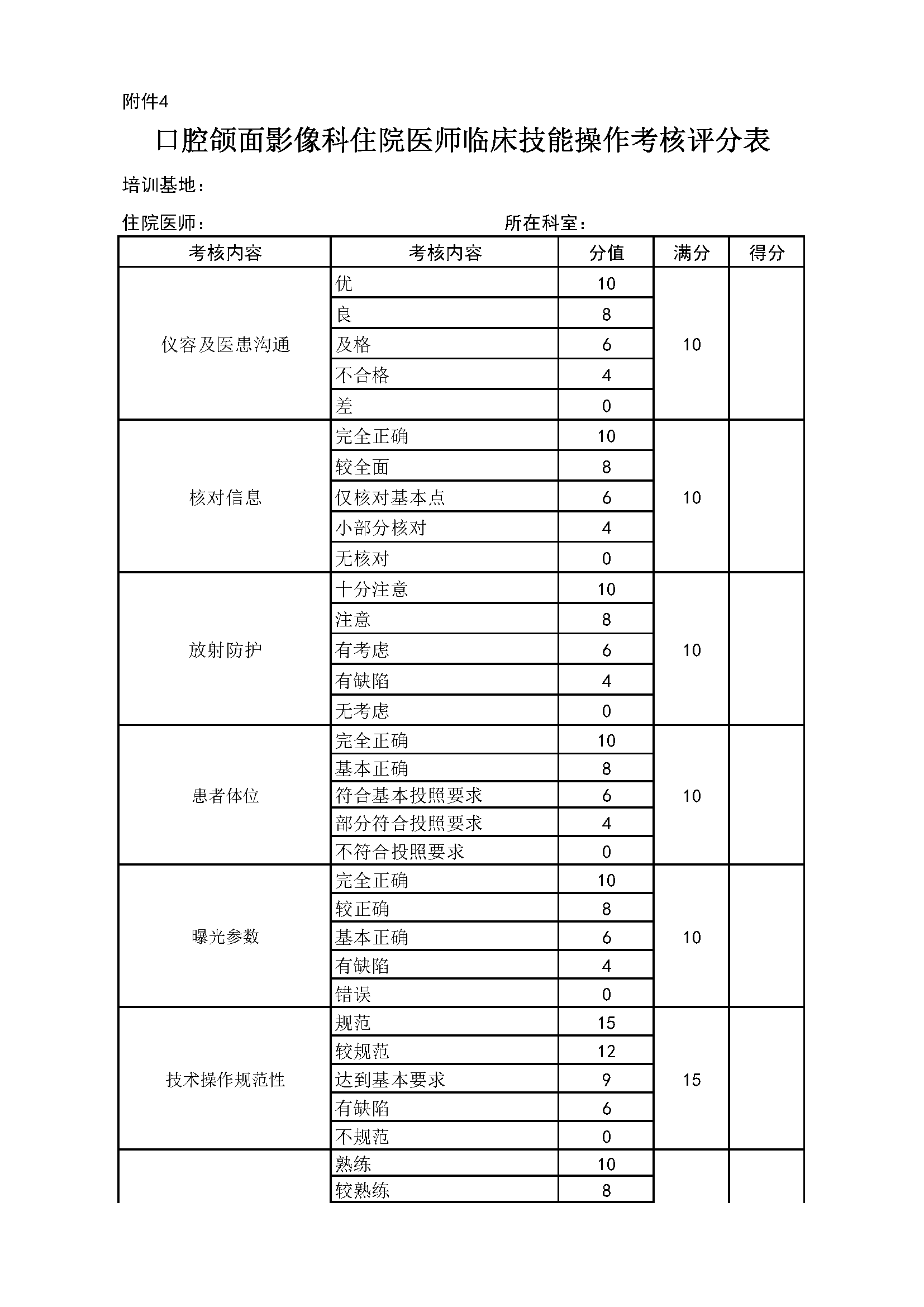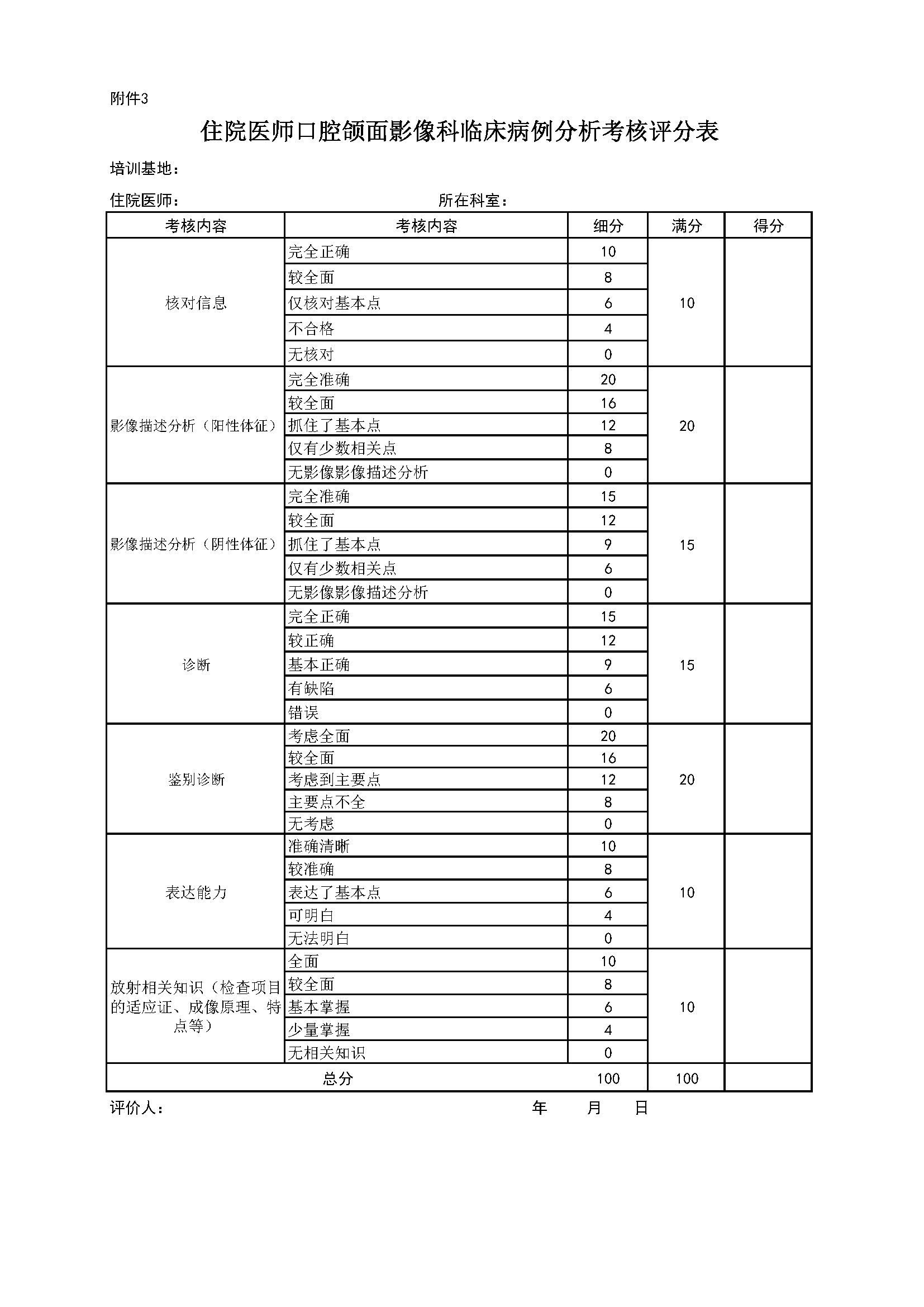 住院医师规范化培训专业基地评估指标(2024年版)—口腔颌面影像科