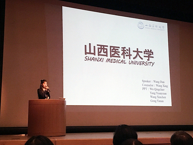 第一届大阪齿科大学国际学生论坛(FIS)作为本次研修的亮点,备受双方关注。来自五所国内顶尖大学的优秀学生代表与大阪齿科大学的学生代表分别就各自学校就学校的概况以及各院校的口腔基础研究和临床特色进行了全英文报告,共10名代表在论坛上同台竞技、深入交流。我校代表王丹同学在14分钟的演讲中对我校及口腔医学系(口腔医院)的概况进行了简要介绍,并着重对我院口腔颌面外科主治医师同时也是此次访问的带队教师王兴博士的科研项目进行了阐述,其项目内容引起了日本专家、教授的重点关注和广泛认可,王丹同学的精彩演讲也获得了在座师生的一致好评。