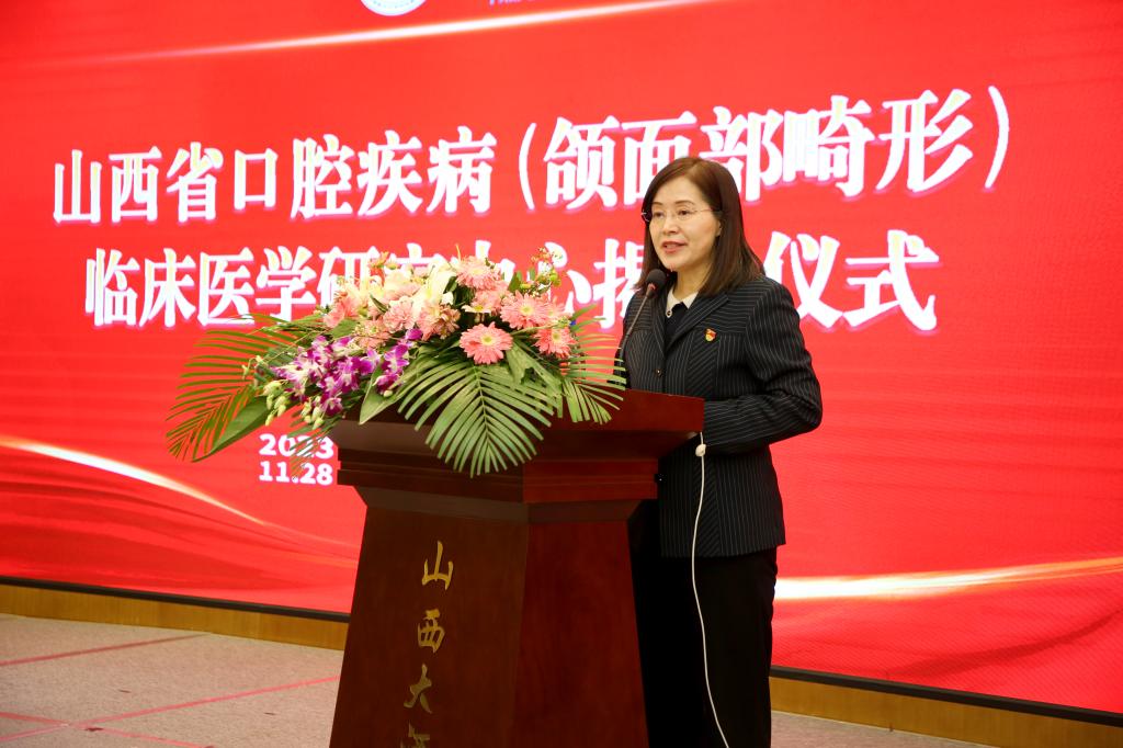 最后,我院党委书记、山西省口腔疾病(颌面部畸形)临床医学研究中心副主任任秀云做表态发言,承诺研究中心将紧密围绕以临床应用为主体的项目申报和研究成果的转化应用落地、做好平台支撑条件的持续完善、加大人才引育的力度,增强责任感、使命感和紧迫感,系统提升临床医学研究能力、研究水平和转化效率,为推动我省口腔医学事业的全面发展、为健康山西做出山医口腔人应有的贡献。