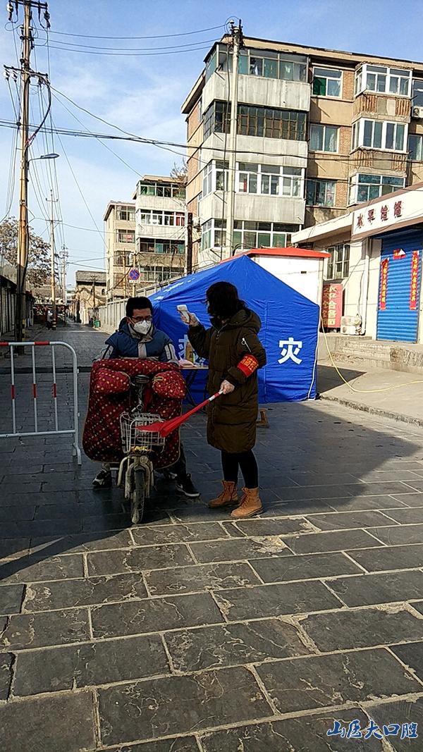 口腔医学院共青团员、2015级061502班牛宇奕,主动向所在山西省晋中市太谷县振兴社区申请并获得批准,在做好自身防护的前提下,负责测量进出人员体温,并对未戴和未正确戴口罩的人员进行提醒宣教。